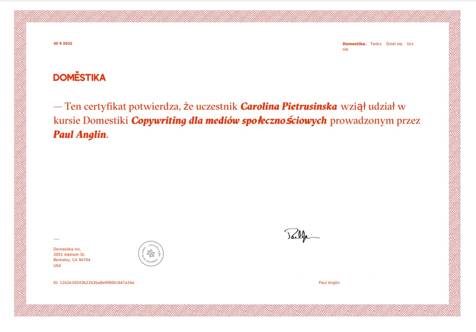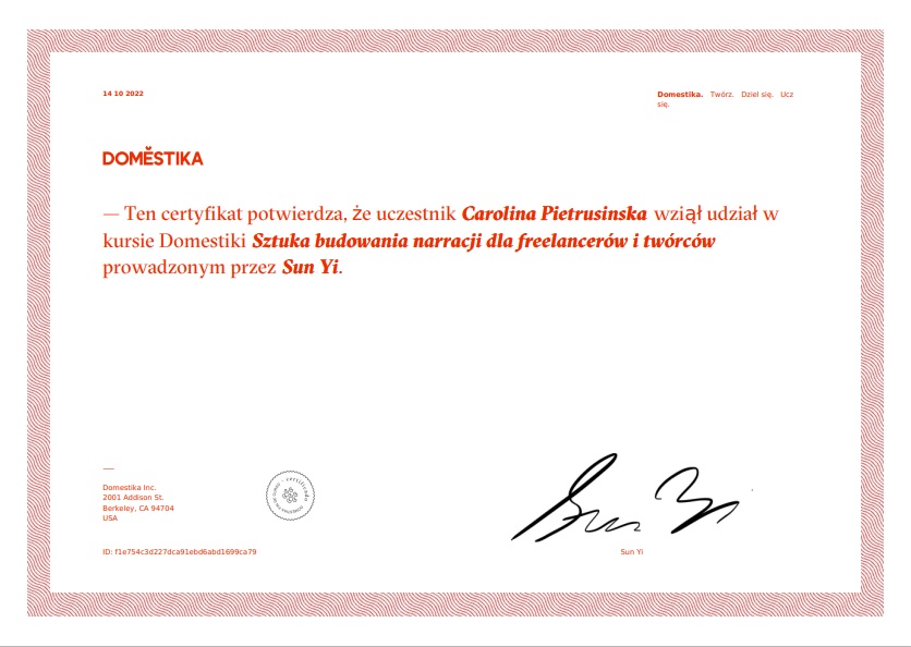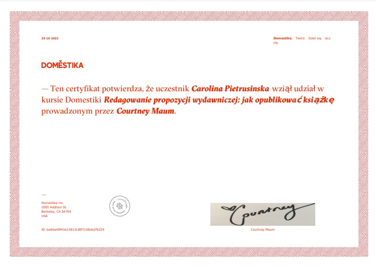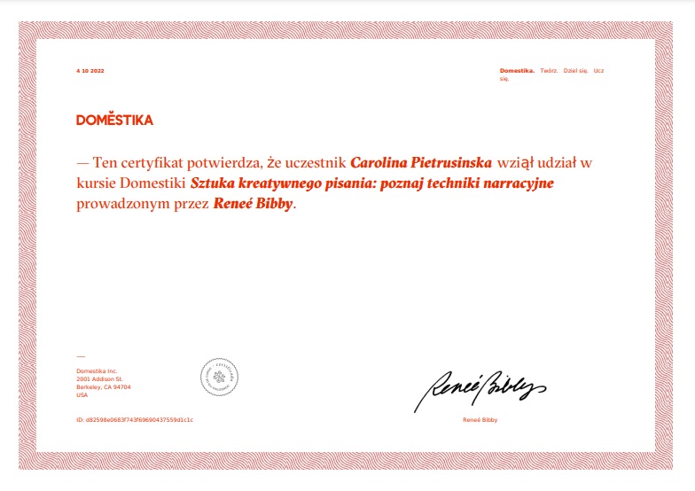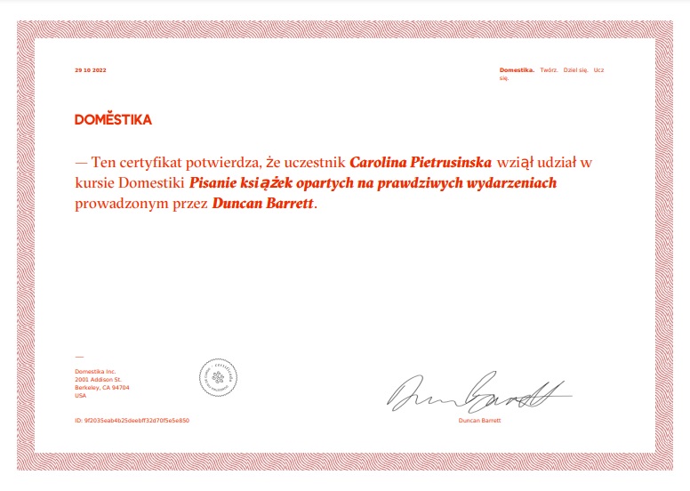 Wszystkie te pasje łączę w całość. Jest to spoiwo, na którym zbudowane jest moje spokojne życie. Ale przyznam się szczerze, że bardzo długo szukałam swojej życiowej drogi. Gdy w końcu ją znalazłam byłam już kobietą dojrzałą, po trzydziestce. Nie bałam się przekwalifikować, ukończyć szeregu kursów doszkalających, zapisać się na naukę języków obcych. Z wystraszonej kury domowej stałam się odważną osobą, która przestała udawać kogoś, kim nigdy nie była.