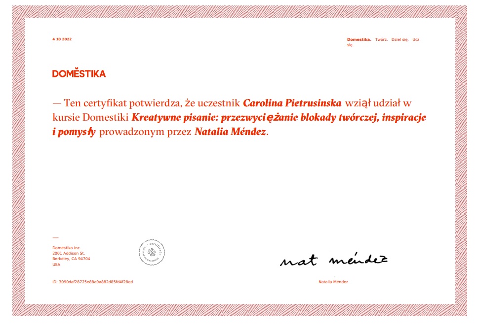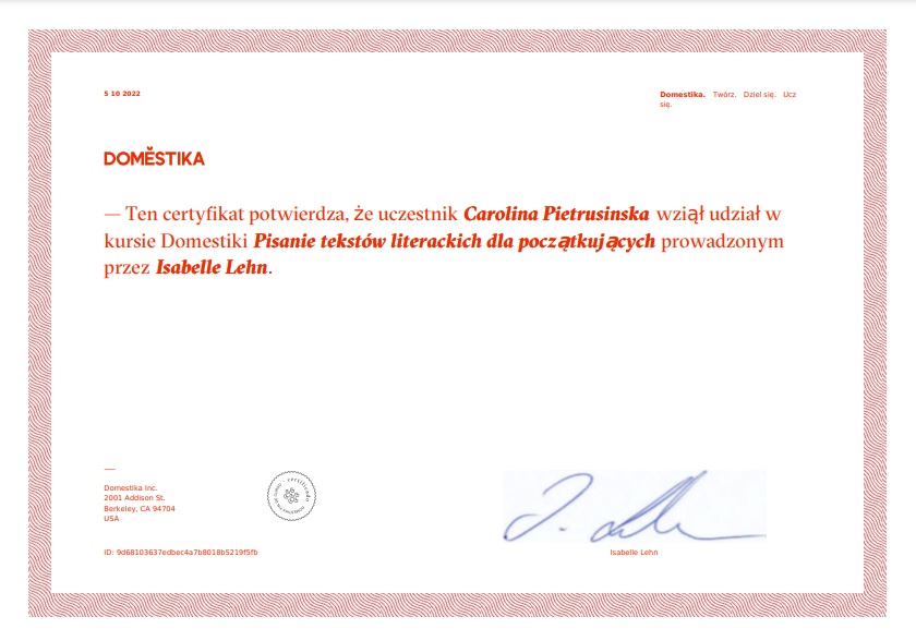 Pisanie jest dla mnie jak tlen. Jak coś, bez czego czuje się naga. Każdy ma coś do powiedzenia. Każdy ma marzenia i pragnienia, które należy spełniać i cele, do których należy dążyć.